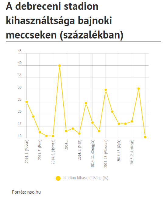 Bár az új debreceni stadiont az avatón és az azt követő bajnokin még megtöltötték a szurkolók, azóta a nézőszám kevesebb, mint negyedére esett vissza.