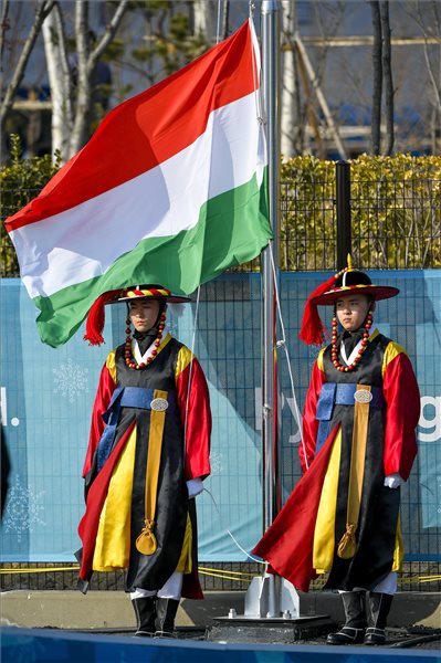 Ünnepség keretében csütörtökön felvonták a magyar lobogót a pénteken rajtoló phjongcshangi téli olimpia kangnungi olimpiai falujában.